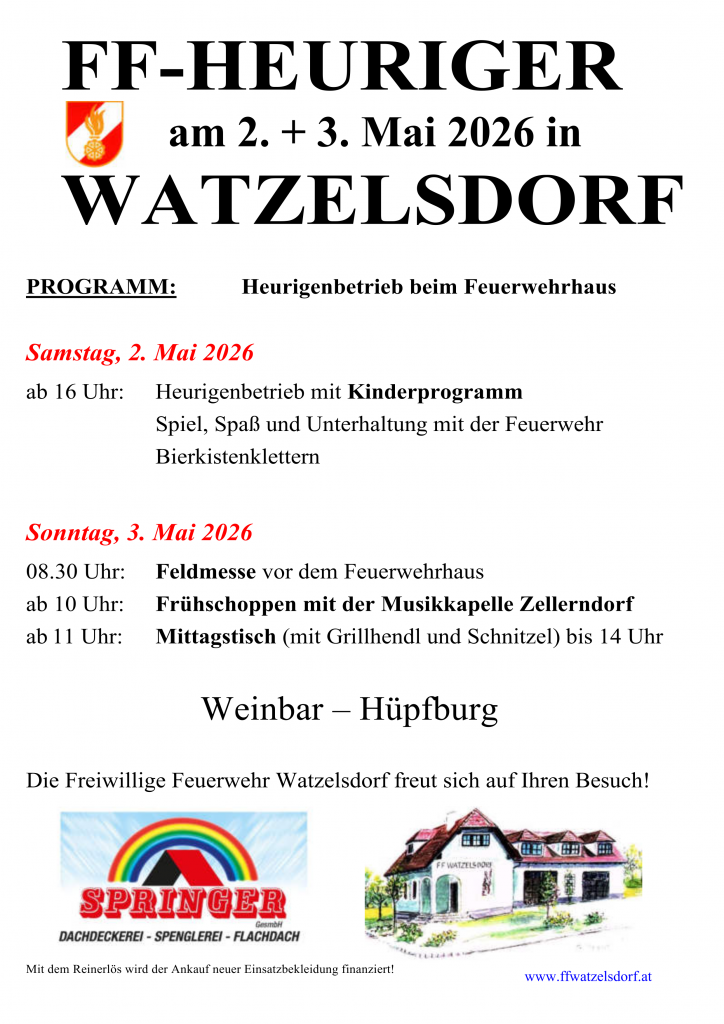 FF Heuriger – am 02.05.2026 ab 16 Uhr und 03.05.2026 ab 08:30 Uhr